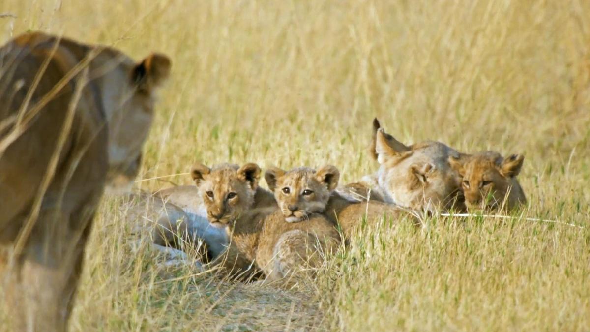 Tsebe’s large and very rare litter of five cubs indicates a healthy pride. But survival isn’t guaranteed. A young cub must consume more than 20 fluid ounces of milk each day, and a nursing mother needs food to supply it and remain healthy. In reality, Xudum Pride’s growth is outpacing its food supply. As prey becomes less available, Tsebe and her five cubs will be the first to go hungry.